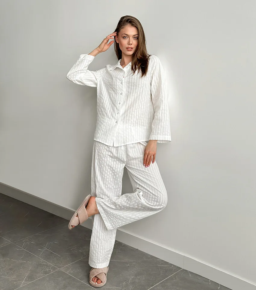 Style:Elegant Hign-concerned Chemical:None Craft of Weaving:Tat Thickness:normal Sexually Suggestive:No Obscene Picture:No Model Number:2SYCK3432B Length:full length Season:Spring Material Composition:100% cotton Collar:Turn-Down Collar Sleeve Length(cm):Full Pattern Type:Solid Material:Cotton Brand Name:EAEOVNI Origin:Mainland China CN:Guangdong Gender:Women Item Type:PAJAMAS Style:Simple comfortable Thickness index:moderate Softness index:moderate