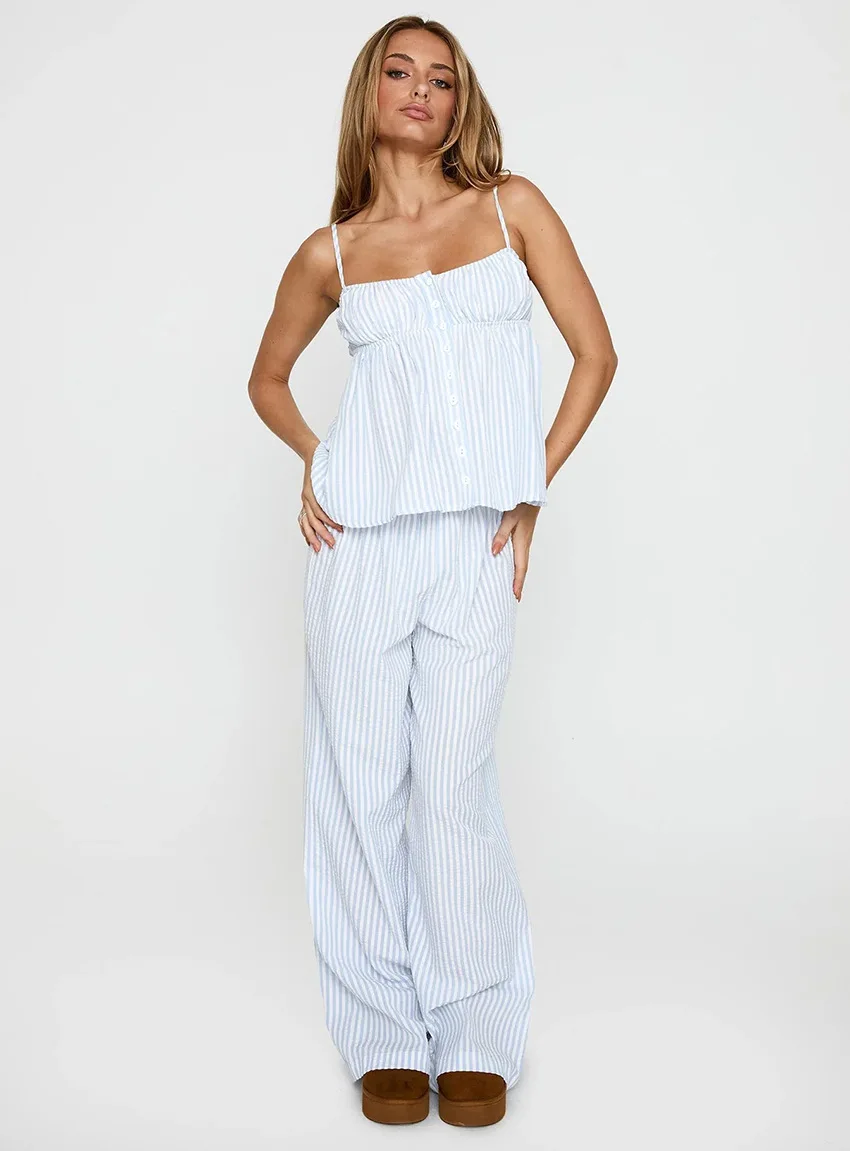 Striped Suspender Top Casual Trousers Loose Comfortable