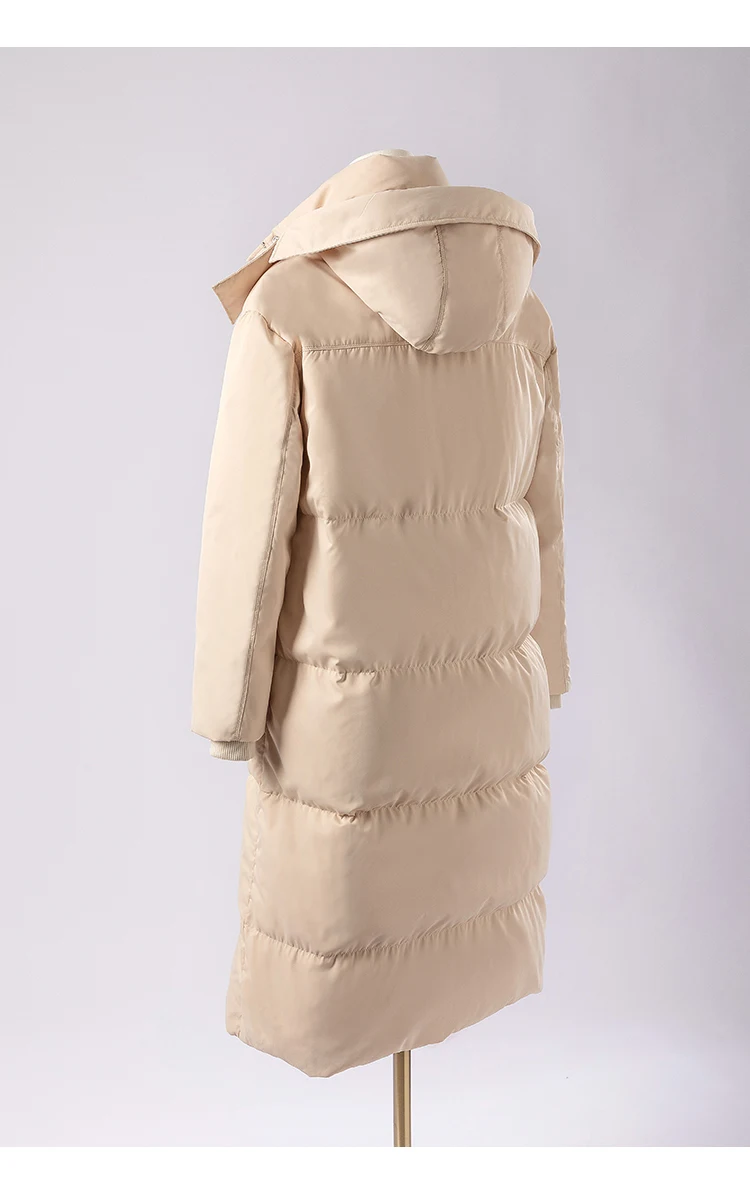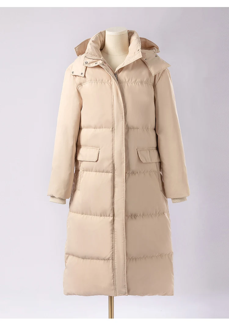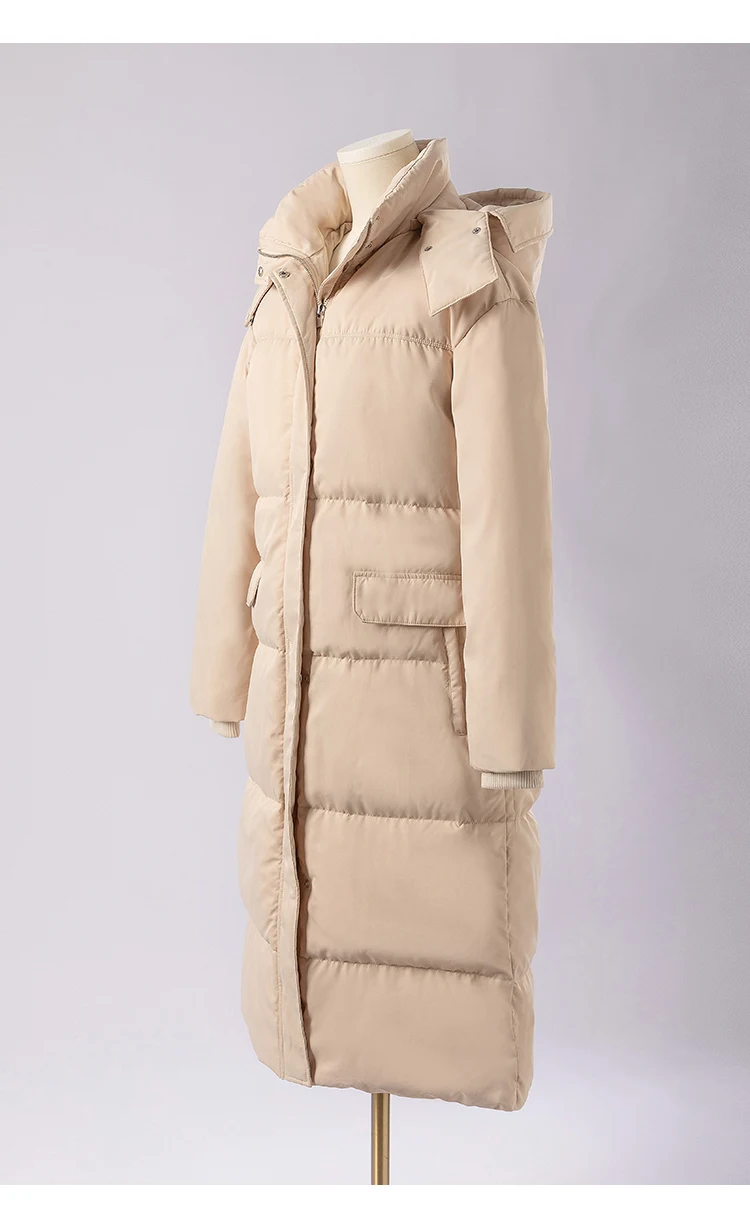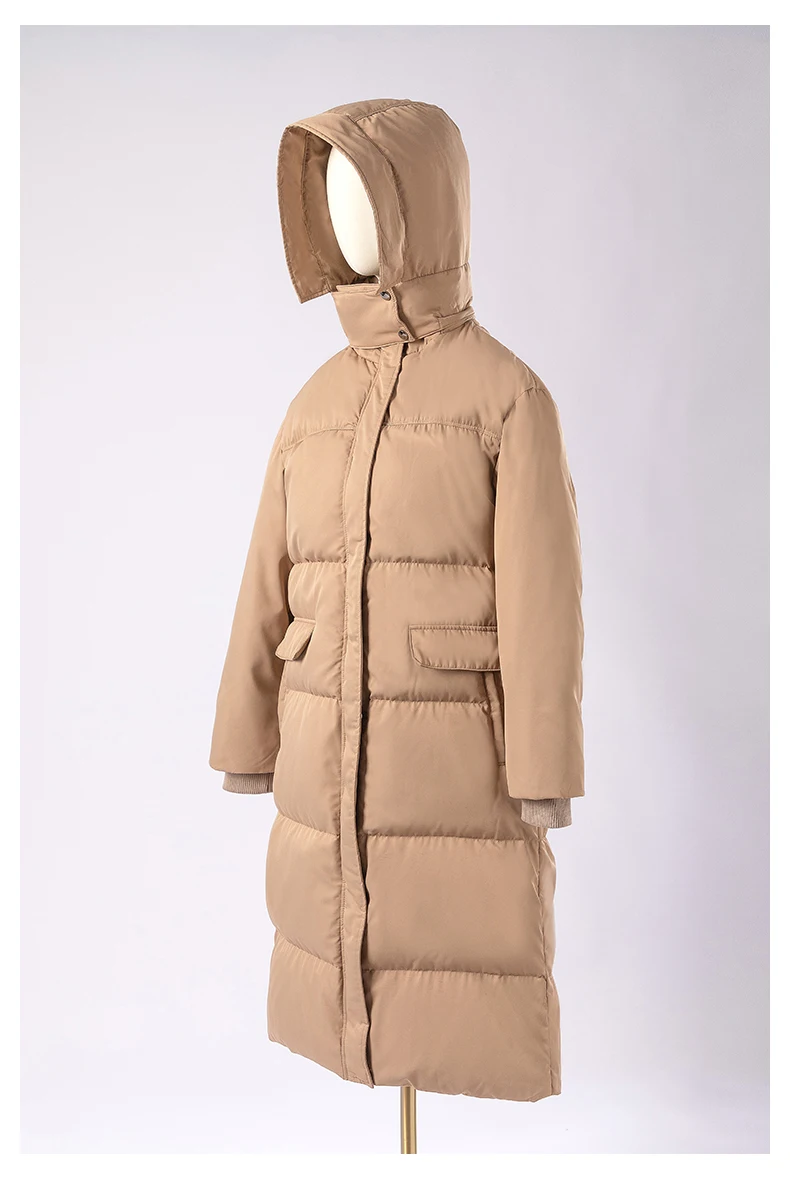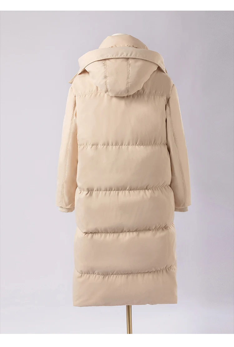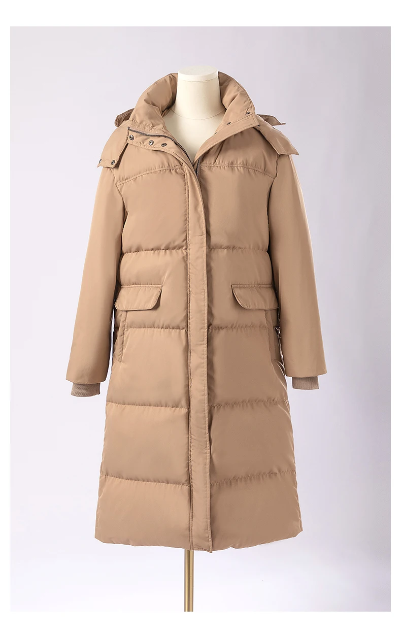 whether full opening:Yes Hign-concerned Chemical:None Craft of Weaving:Tatting Release Date:Winter 2025 Season:Winter Age:Middle Age Model Number:K1990X Weight:0.9KG Style:Casual Down Weight:<100g Detachable Part:Hat Detachable Hooded:Yes Material:POLYESTER Down Content:90% Filling:White duck down Sleeve Length(cm):Full Thickness:Thick Type:Wide-waisted Closure Type:Zipper Pattern Type:Solid Clothing Length:long(26+inch) Gender:Women Origin:Mainland China