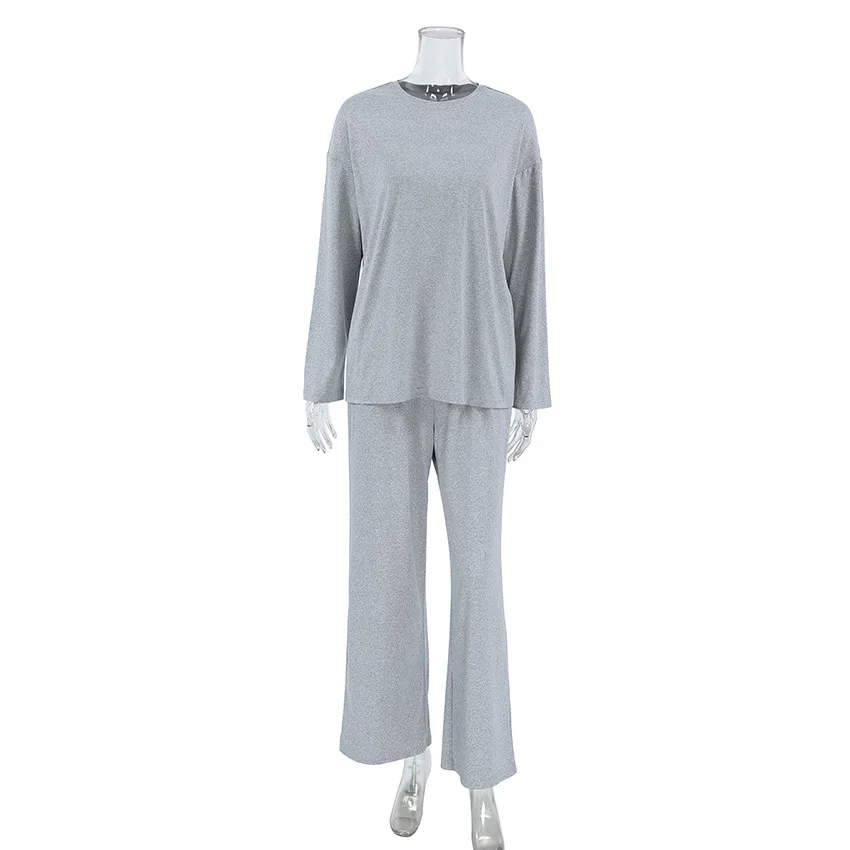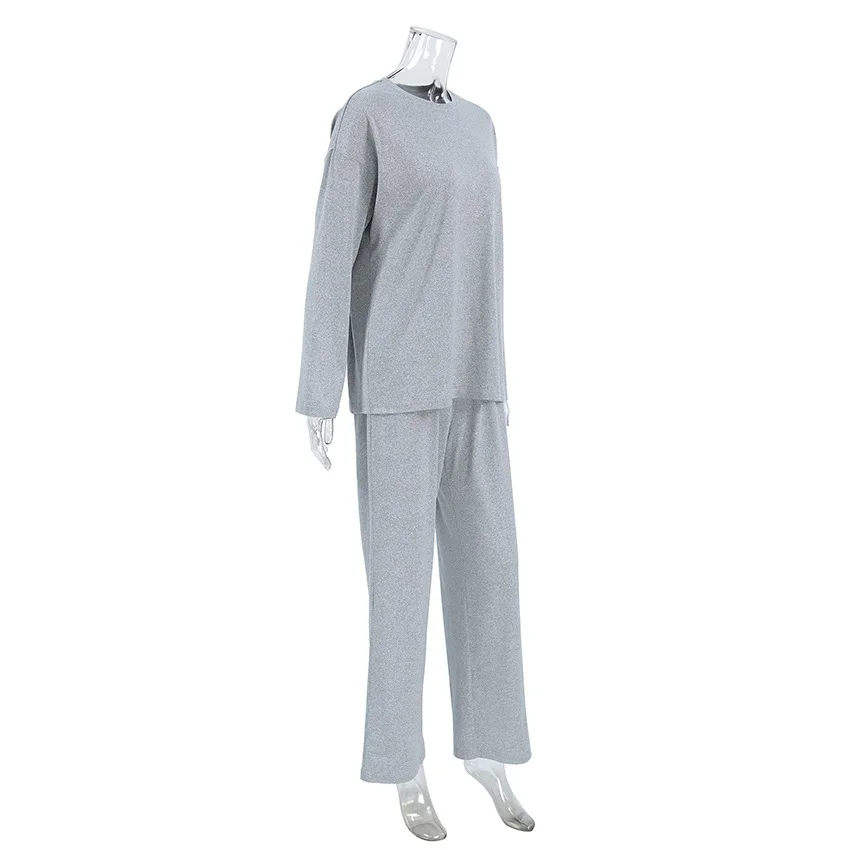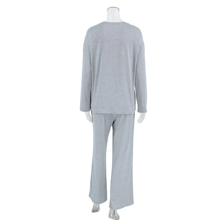 Home Clothing Fashion Top Women's Solid color Long Sleeved Pants Comfortable Pajama Set