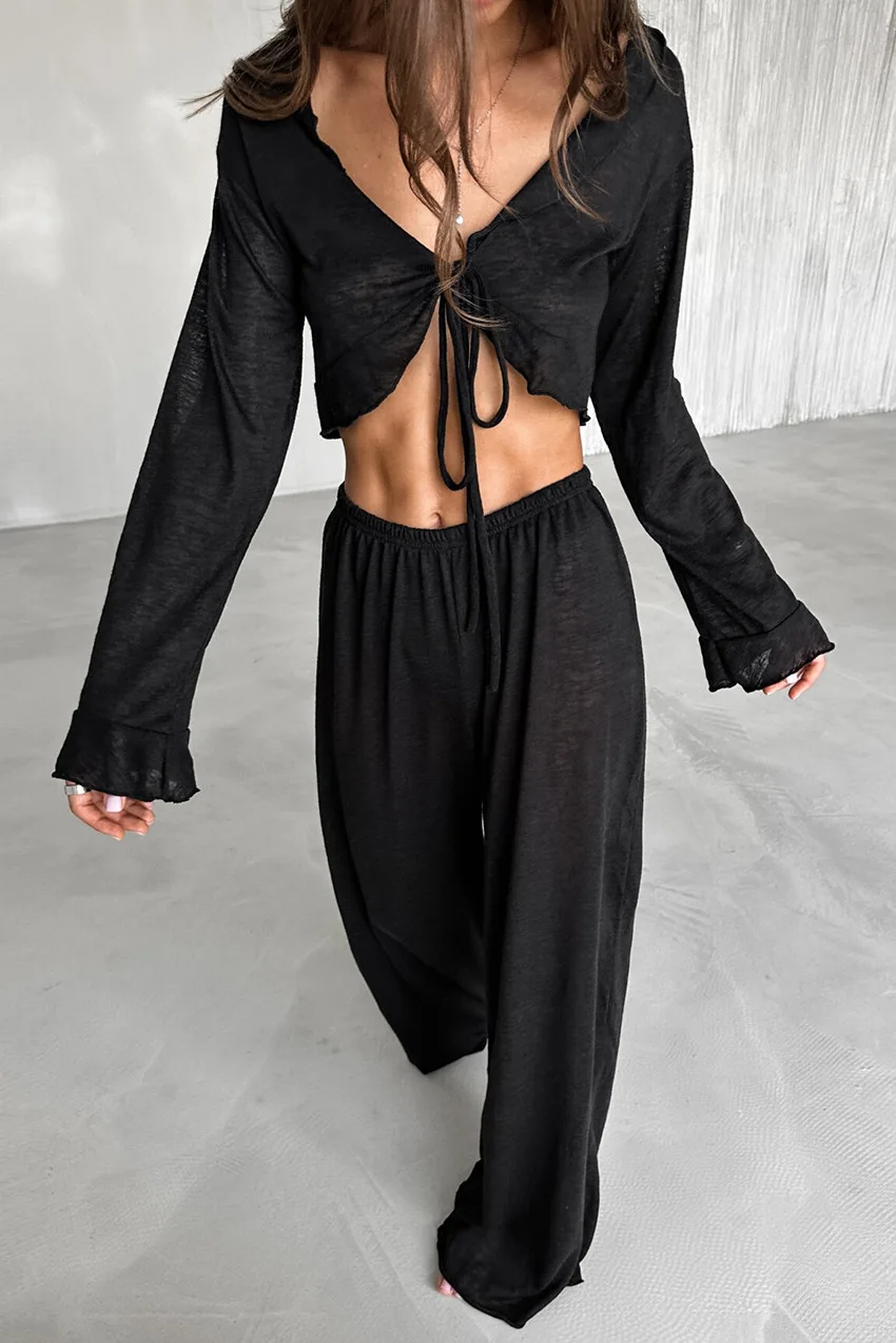 Soft Comfortable Fashion Home Clothes Solid Color Basic Pajamas Set