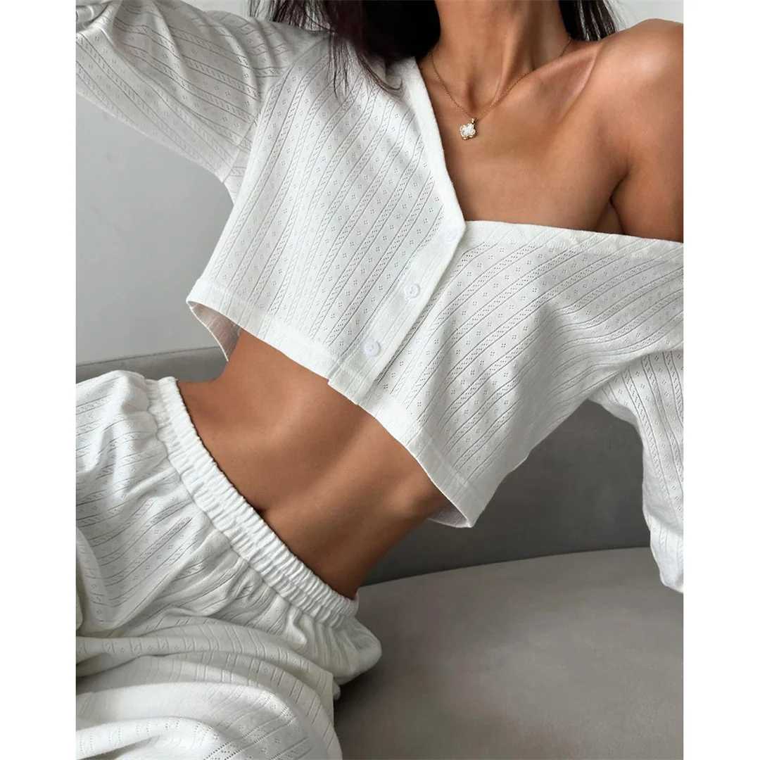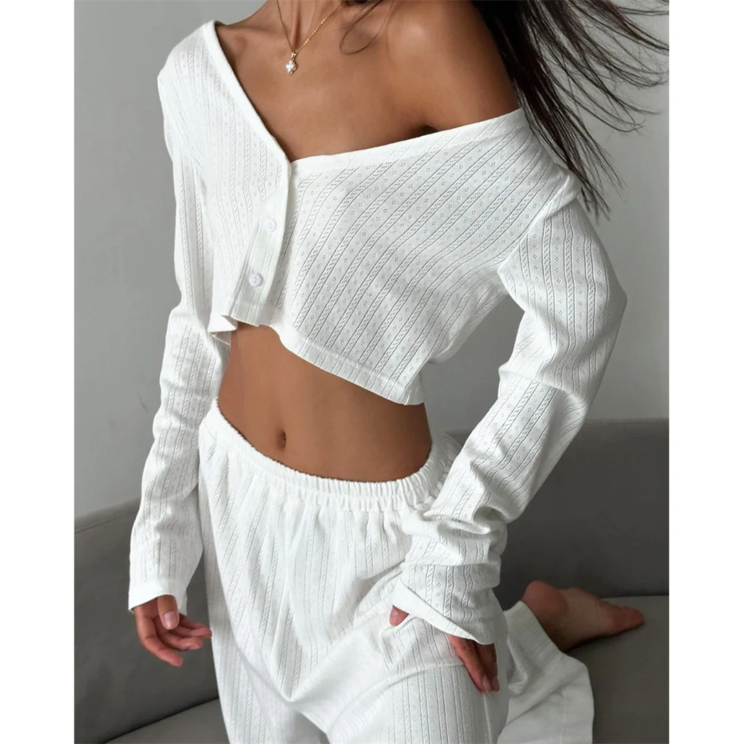 Style:basics Hign-concerned Chemical:None Craft of Weaving:Knit Thickness:normal Sexually Suggestive:No Obscene Picture:No Model Number:D430 Length:Ankle-Length Pants Season:Spring Collar:V-Neck Sleeve Length(cm):Full Pattern Type:Solid Material:Cotton,Spandex Brand Name:Olleinnylla Origin:Mainland China CN:Guangdong Gender:Women Item Type:PAJAMAS