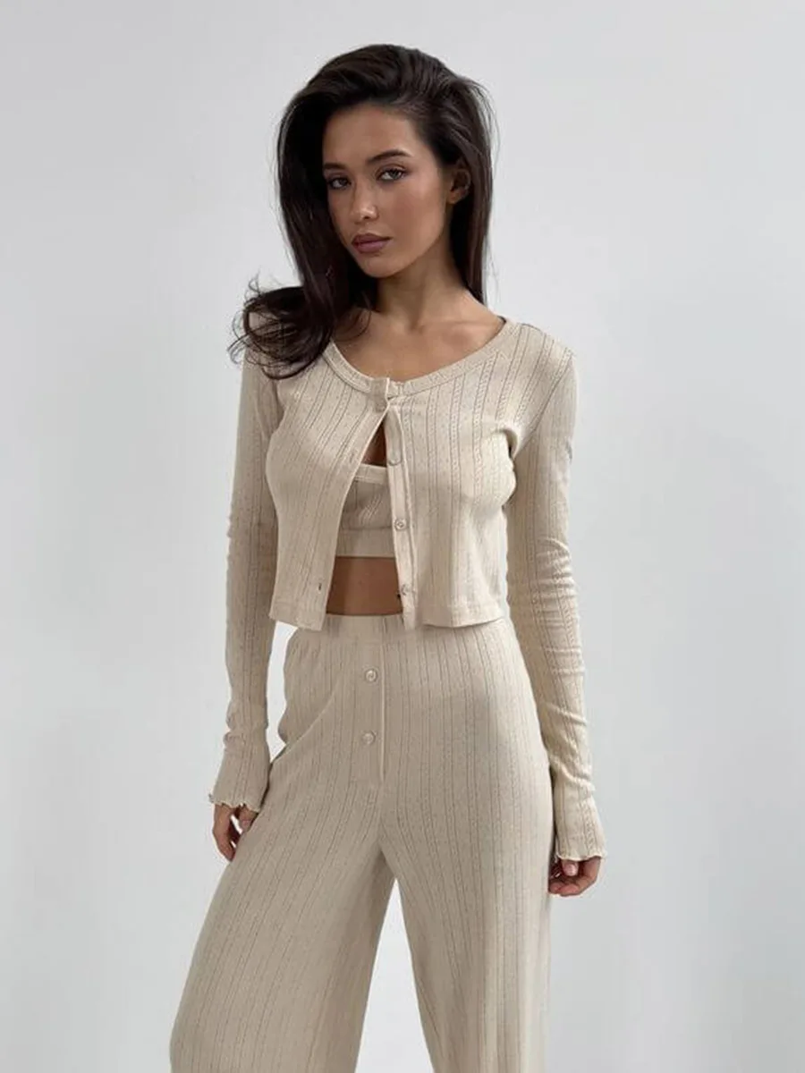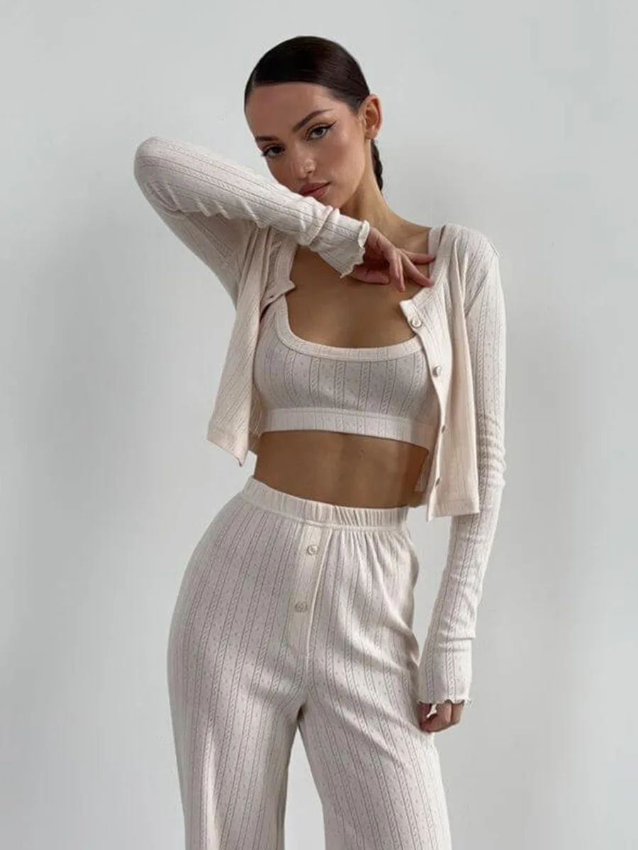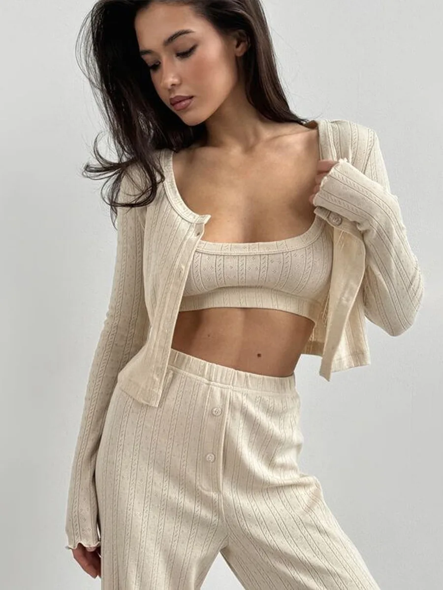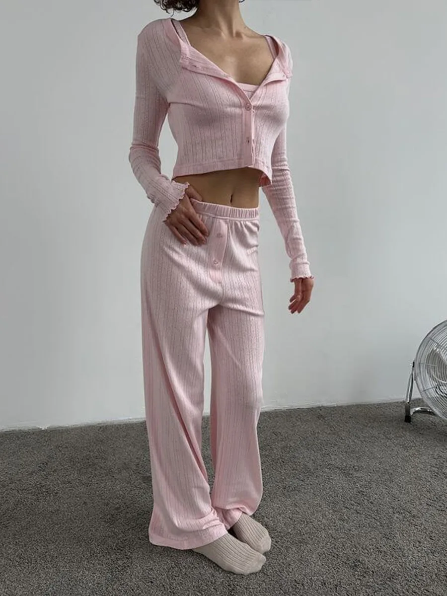 Long Sleeve Underwear Pants Pajama Three Piece Set