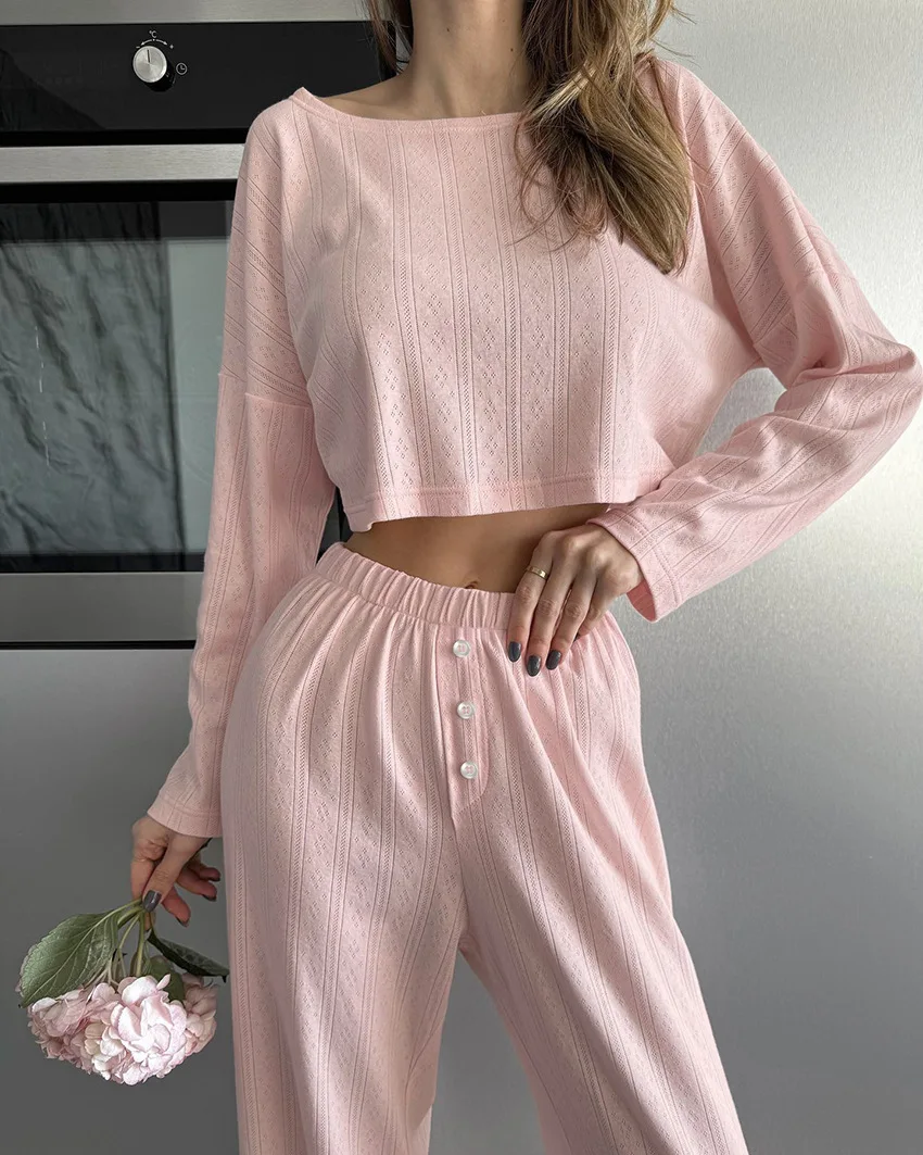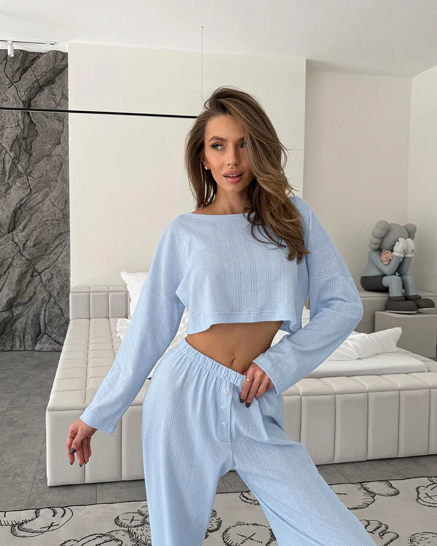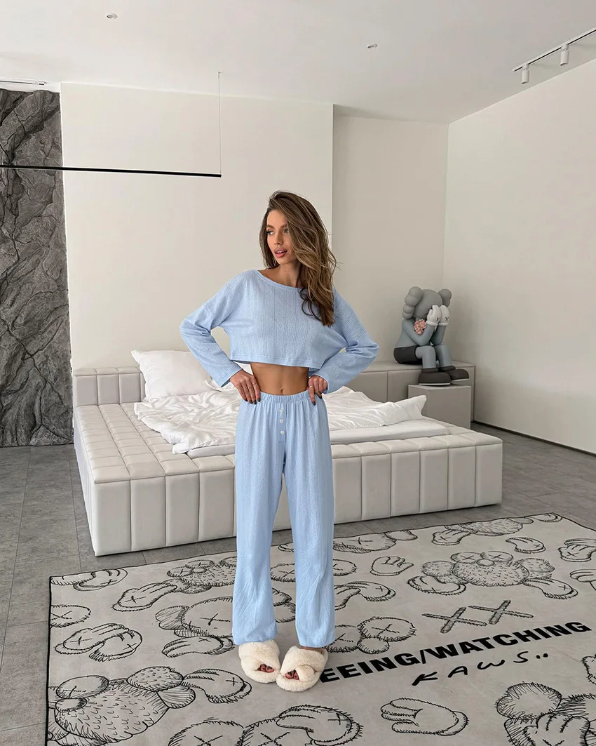 Two-Piece Set Knitted Elastic Navel Exposed Home Clothing Fashion Simplicity Lady