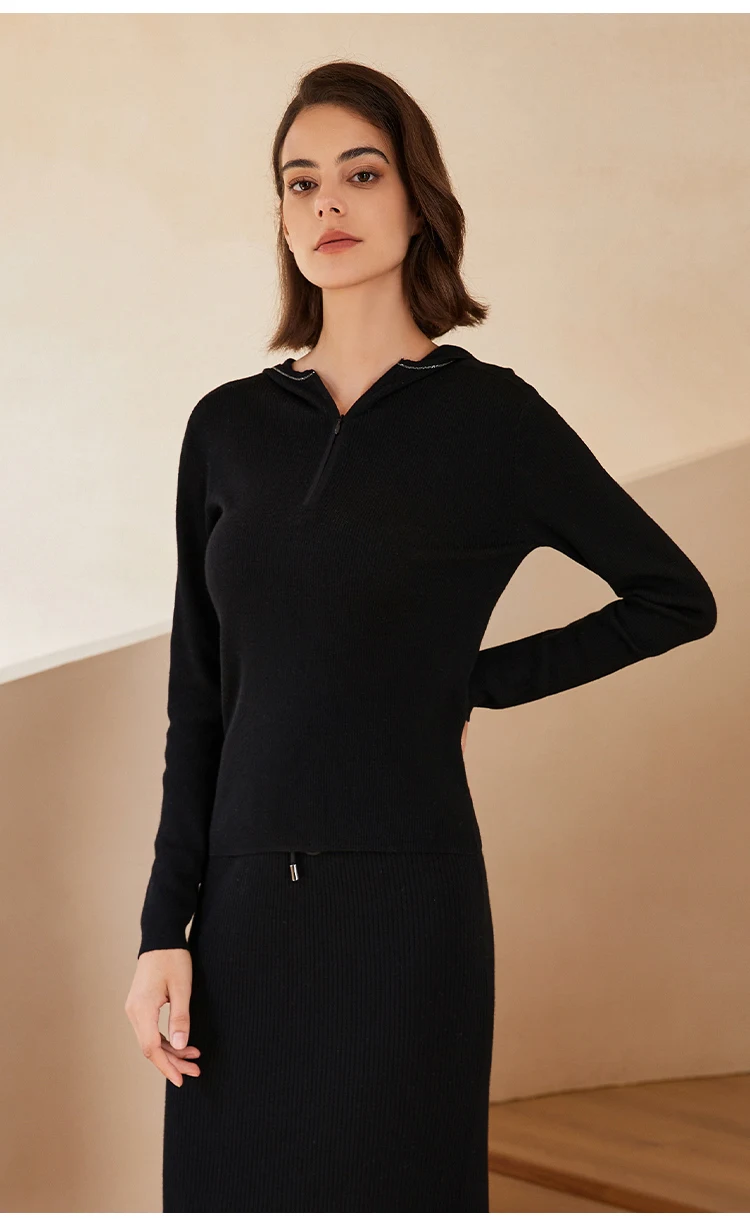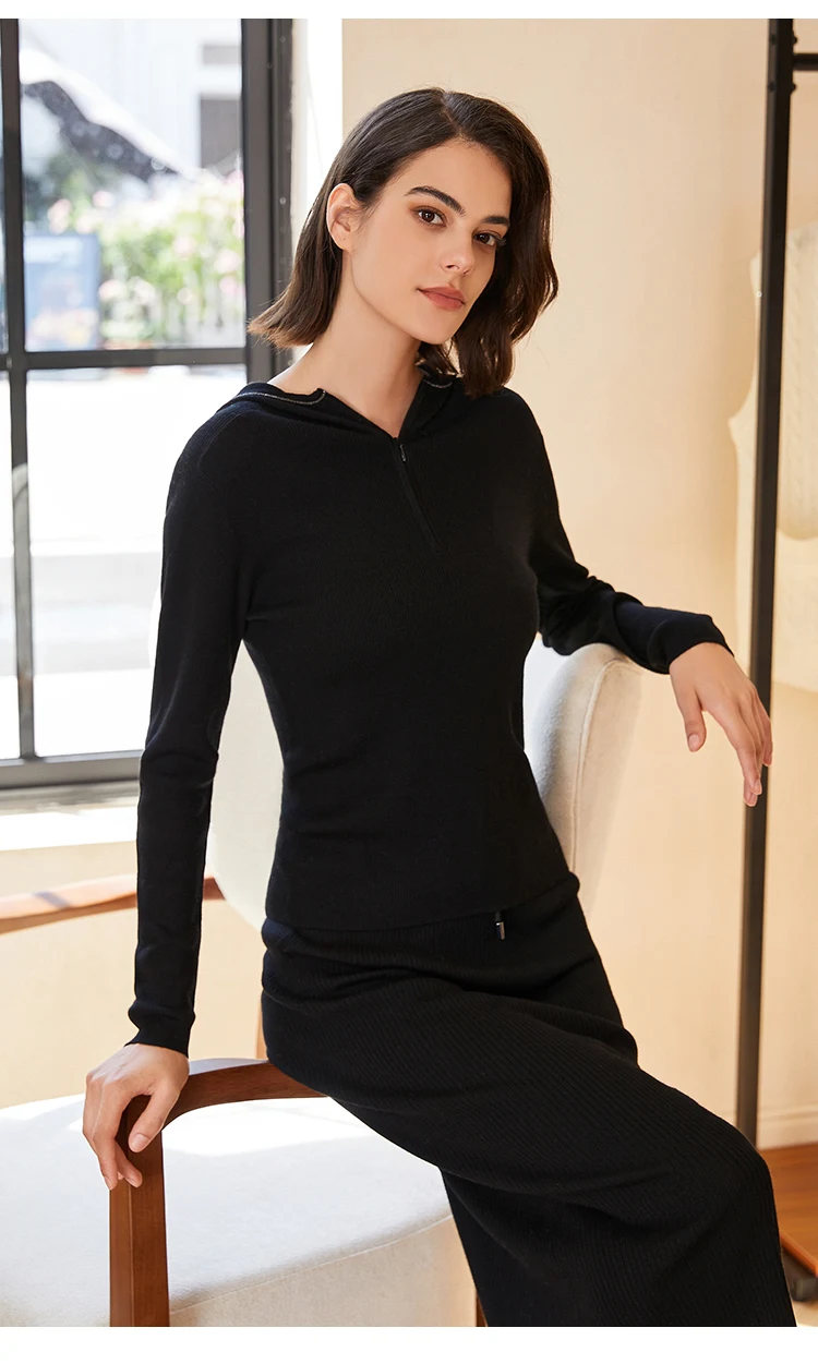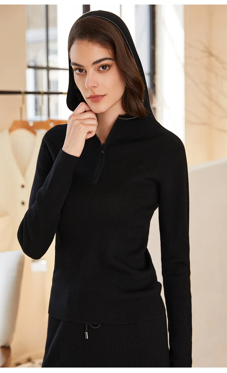 whether full opening:No Hign-concerned Chemical:None Release Date:Autumn 2025 Craft of Weaving:Knit Pattern:SLIM Yarn Thickness:Regular yarn Percentage of Material:95% above Season:Autumn/Winter Age:Middle Age Fabric Weight:Lightweight (Fabric Weight < 120 g/m²) Model Number:23BC-262 Place Of Origin:China (mainland) Pattern Type:Solid Gender:Women Sleeve Length(cm):Full Style:Casual Decoration:Zippers Material:Wool Sleeve Style:regular Collar:Hooded Clothing Length:regular Material Composition:100% Wool Brand Name:Serathinan Closure Type:Zipper Elasticity:Slight Strech Fit Type:Slim