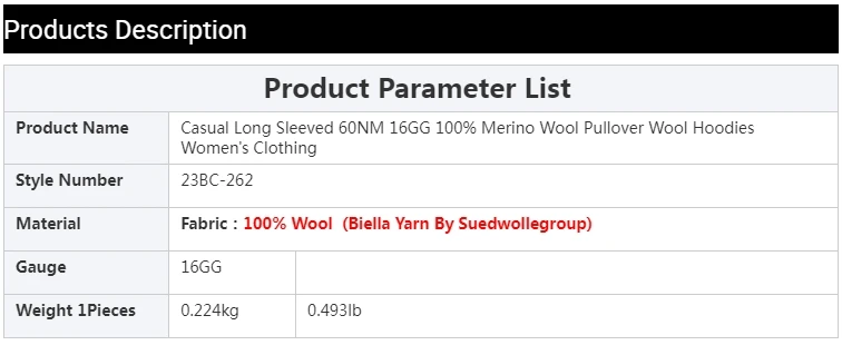 100% Merino Wool Pullover Wool Hoodies Women's Clothing