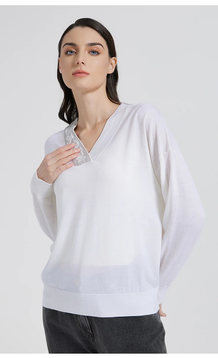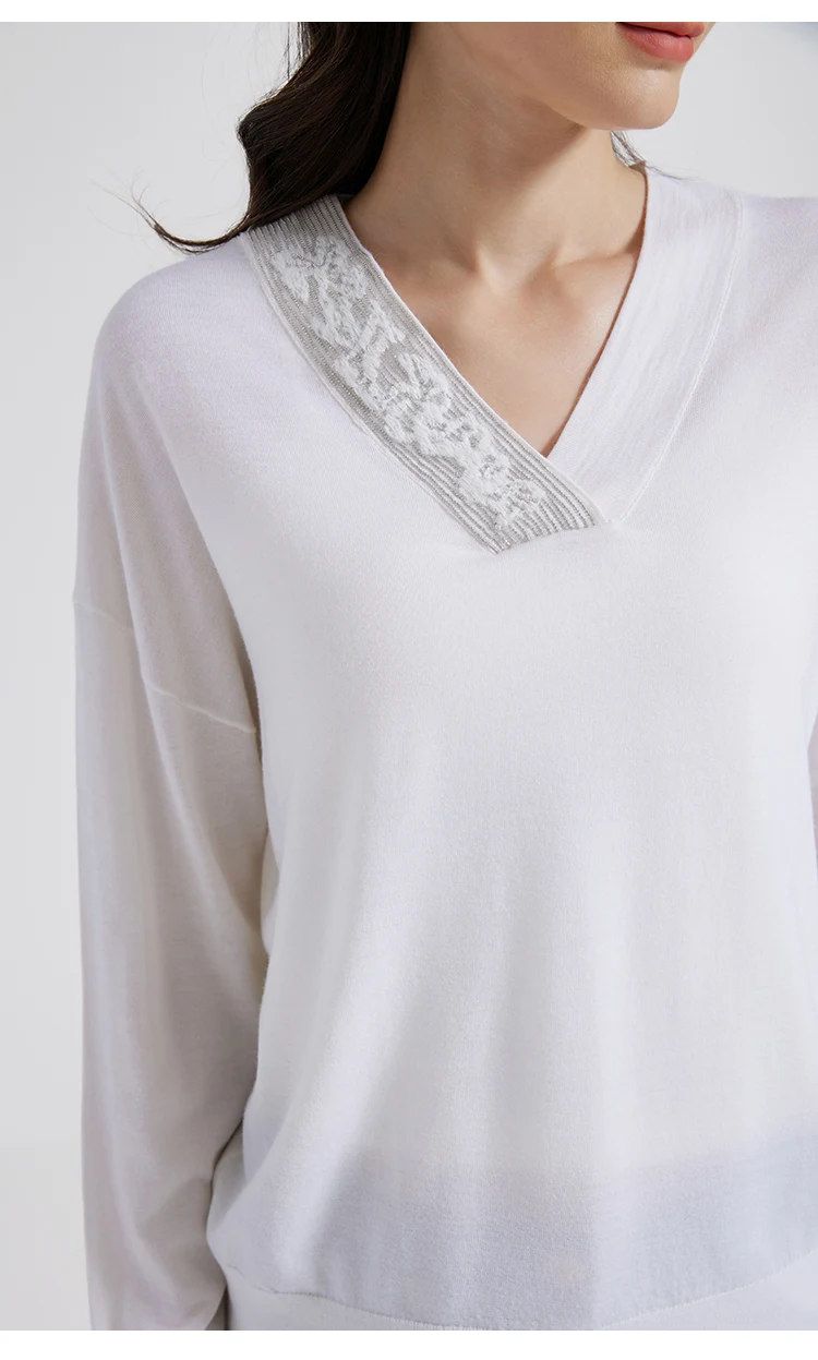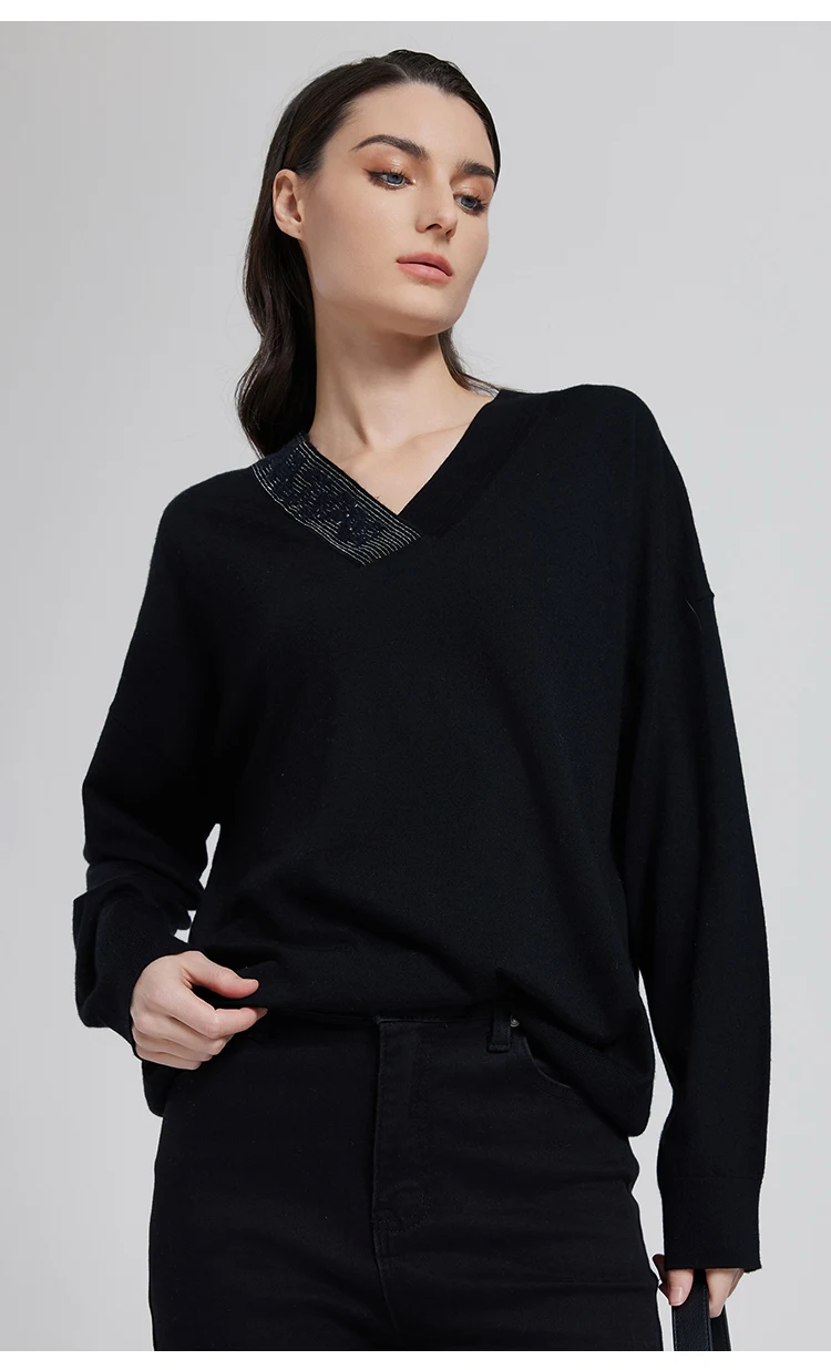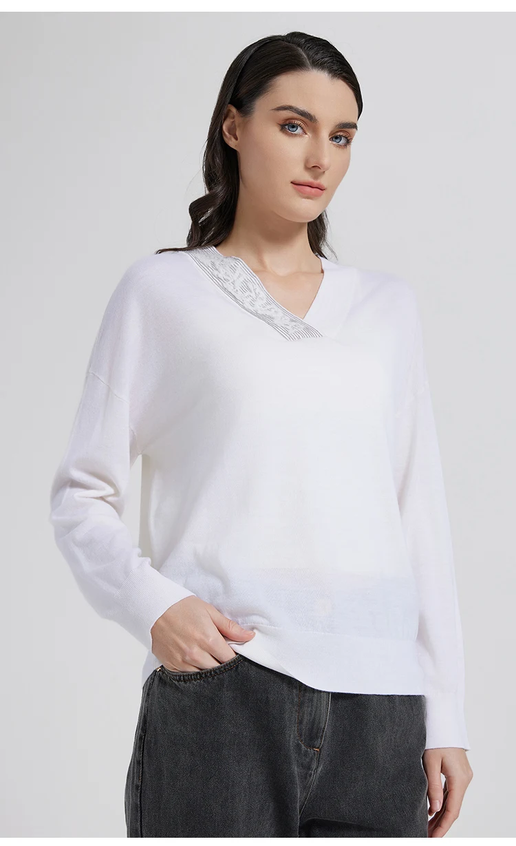 whether full opening:No Hign-concerned Chemical:None Release Date:Spring 2025 Craft of Weaving:Knit Pattern:Loose-fitting Yarn Thickness:Regular yarn Percentage of Material:95% above Season:Spring/Summer Age:35-44 Fabric Weight:Lightweight (Fabric Weight < 120 g/m²) Model Number:BC1043 Place Of Origin:China (mainland) Pattern Type:Solid Gender:Women Sleeve Length(cm):Full Style:Casual Decoration:Embroidery Material:Wool Sleeve Style:regular Collar:V-Neck Clothing Length:regular Material Composition:100% Wool Brand Name:Serathinan Closure Type:Pullover Elasticity:Medium Strecth Fit Type:Loose