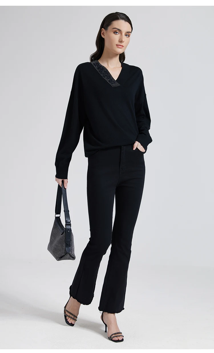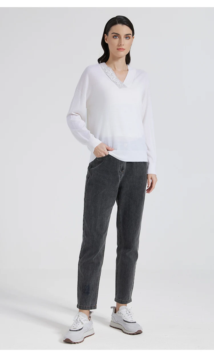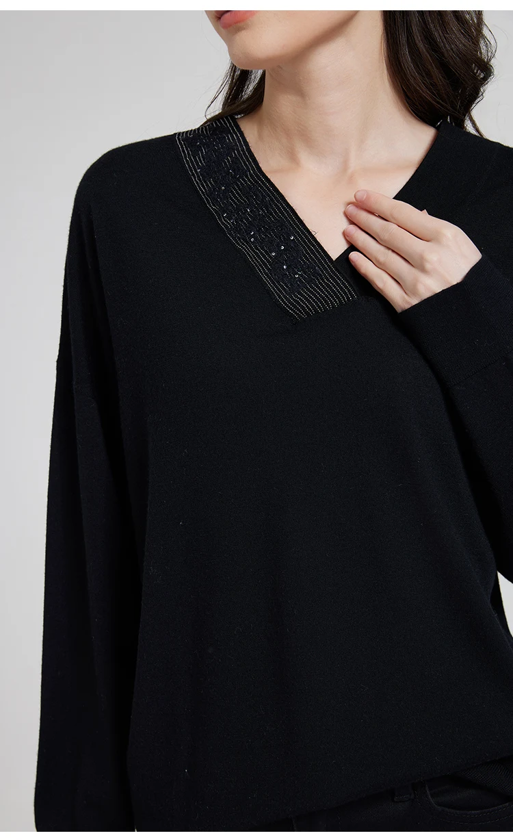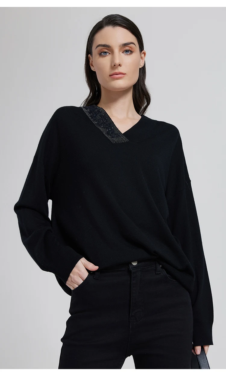 whether full opening:No Hign-concerned Chemical:None Release Date:Spring 2025 Craft of Weaving:Knit Pattern:Loose-fitting Yarn Thickness:Regular yarn Percentage of Material:95% above Season:Spring/Summer Age:35-44 Fabric Weight:Lightweight (Fabric Weight < 120 g/m²) Model Number:BC1043 Place Of Origin:China (mainland) Pattern Type:Solid Gender:Women Sleeve Length(cm):Full Style:Casual Decoration:Embroidery Material:Wool Sleeve Style:regular Collar:V-Neck Clothing Length:regular Material Composition:100% Wool Brand Name:Serathinan Closure Type:Pullover Elasticity:Medium Strecth Fit Type:Loose