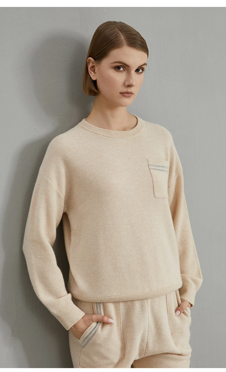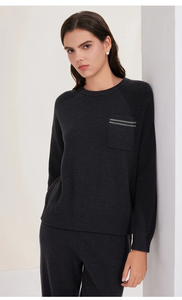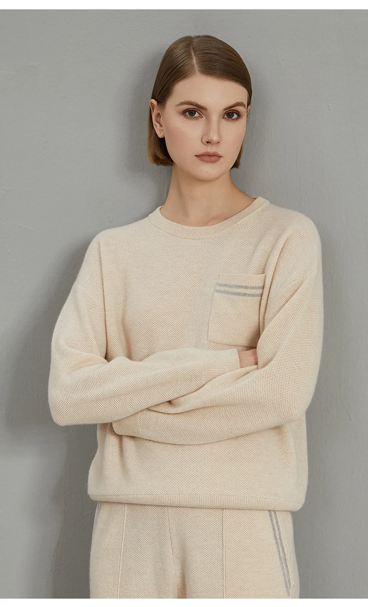 whether full opening:No Hign-concerned Chemical:None Release Date:Autumn 2025 Craft of Weaving:Knit Pattern:Loose-fitting Yarn Thickness:Regular yarn Percentage of Material:95% above Season:Autumn Age:35-45 Years Fabric Weight:Medium (Fabric Weight 120–220 g/m²) Model Number:BC873 Place Of Origin:China (mainland) Pattern Type:Solid Gender:Women Sleeve Length(cm):Full Style:Casual Decoration:Pockets Material:Wool Sleeve Style:regular Collar:Crew Neck Clothing Length:regular Material Composition:wool Brand Name:Serathinan Closure Type:Pullover Elasticity:Slight Strech Fit Type:Loose