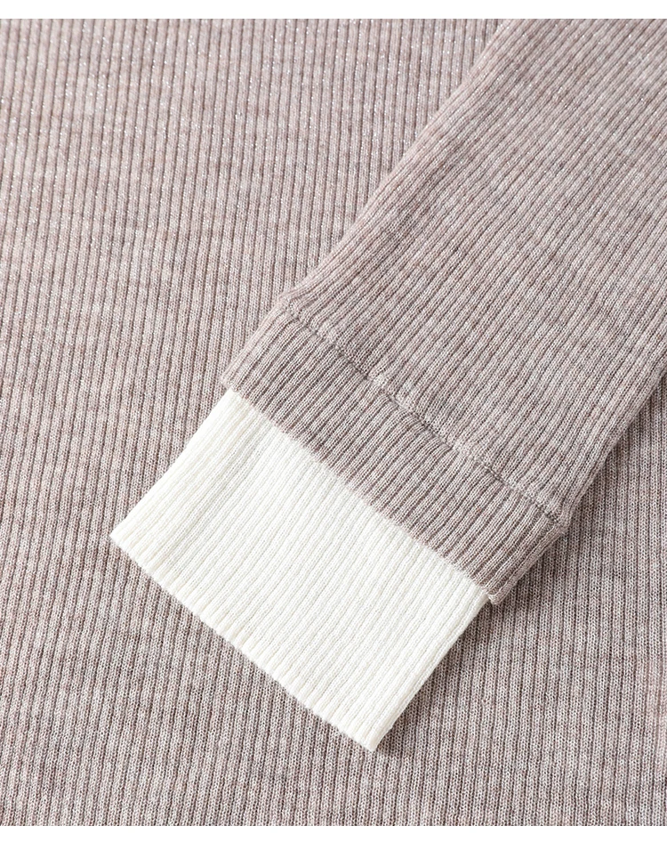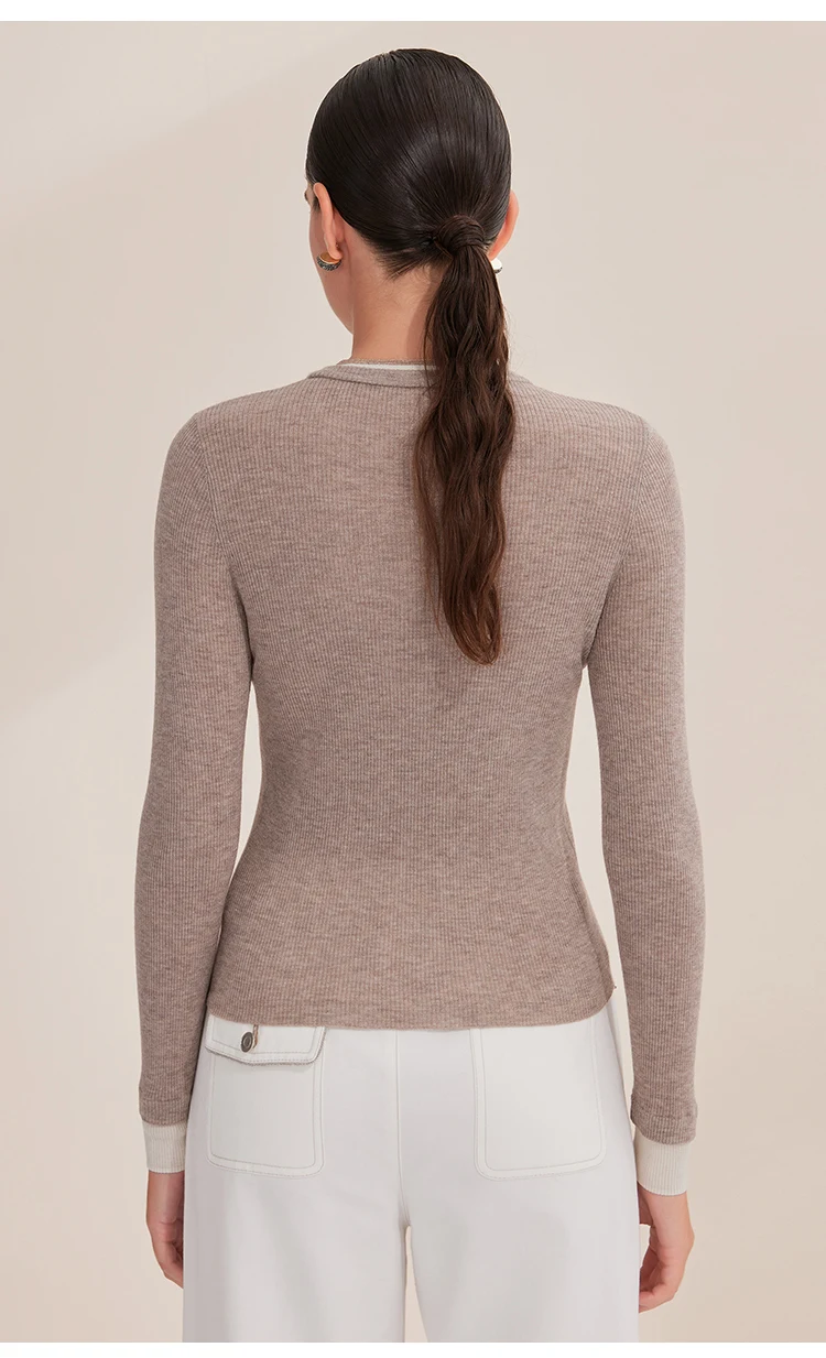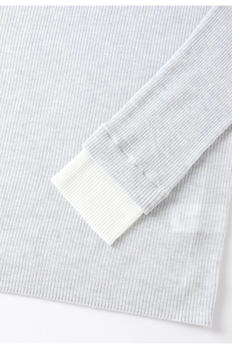 Superfine Merino Wool Knit Sweater Long Sleeve Pullover Contrast Cuffs Fall Fashion