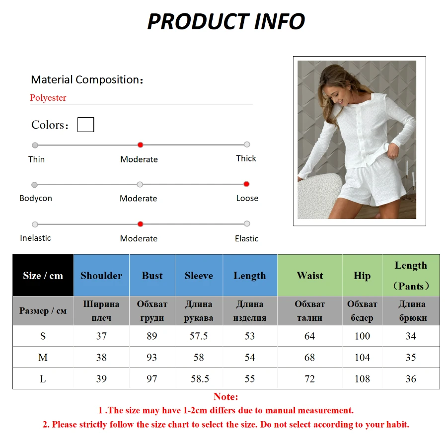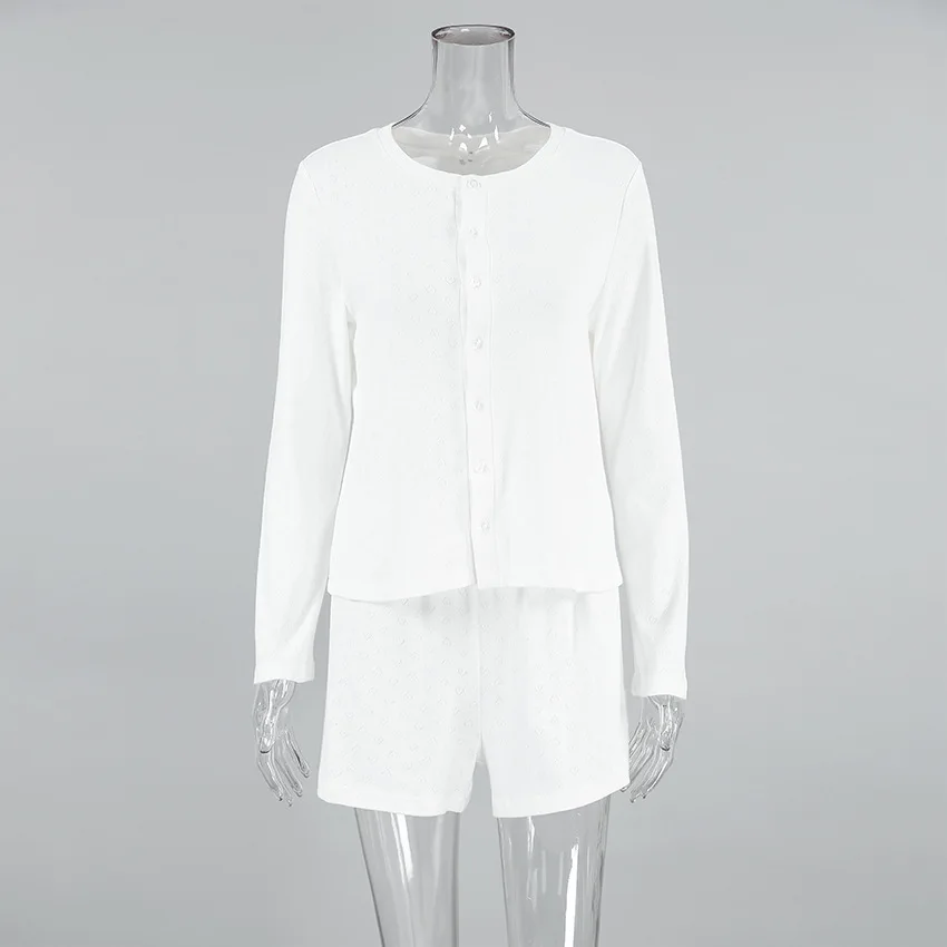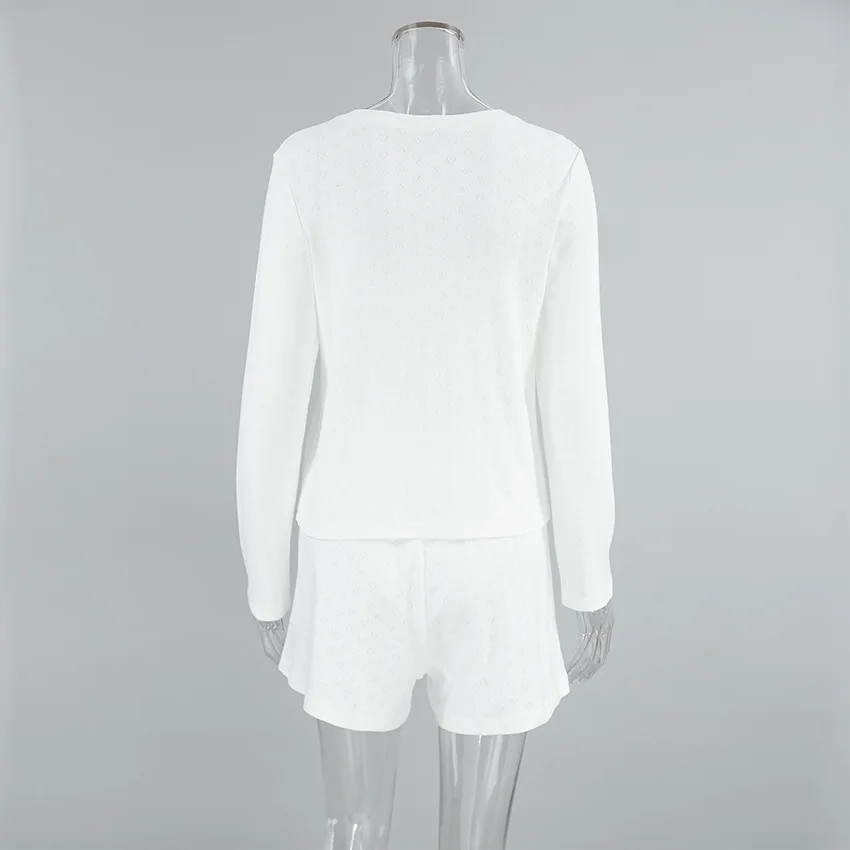 Two Piece Set Of Pajamas White Cardigan Long Sleeved Shorts Loose