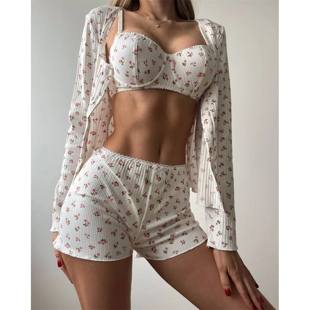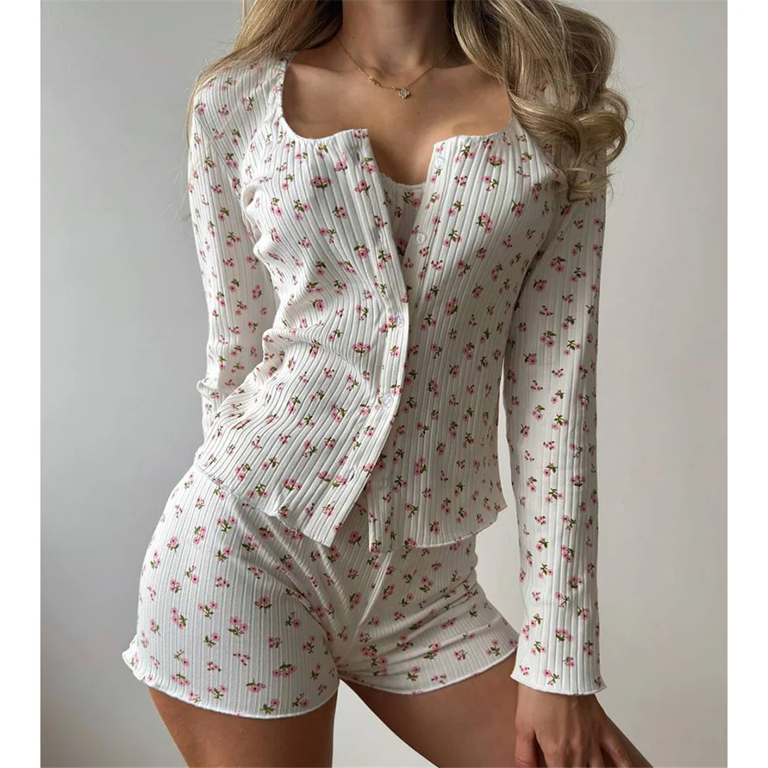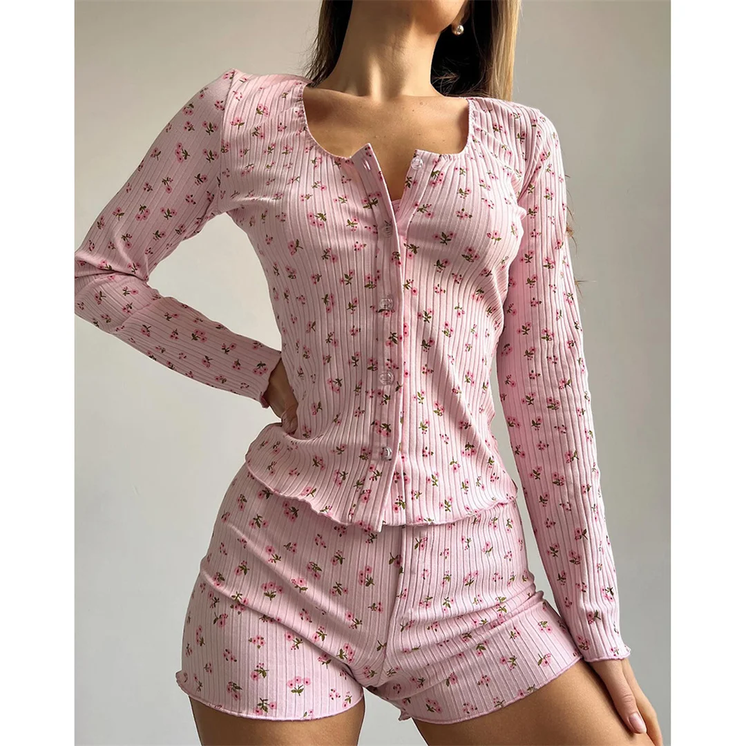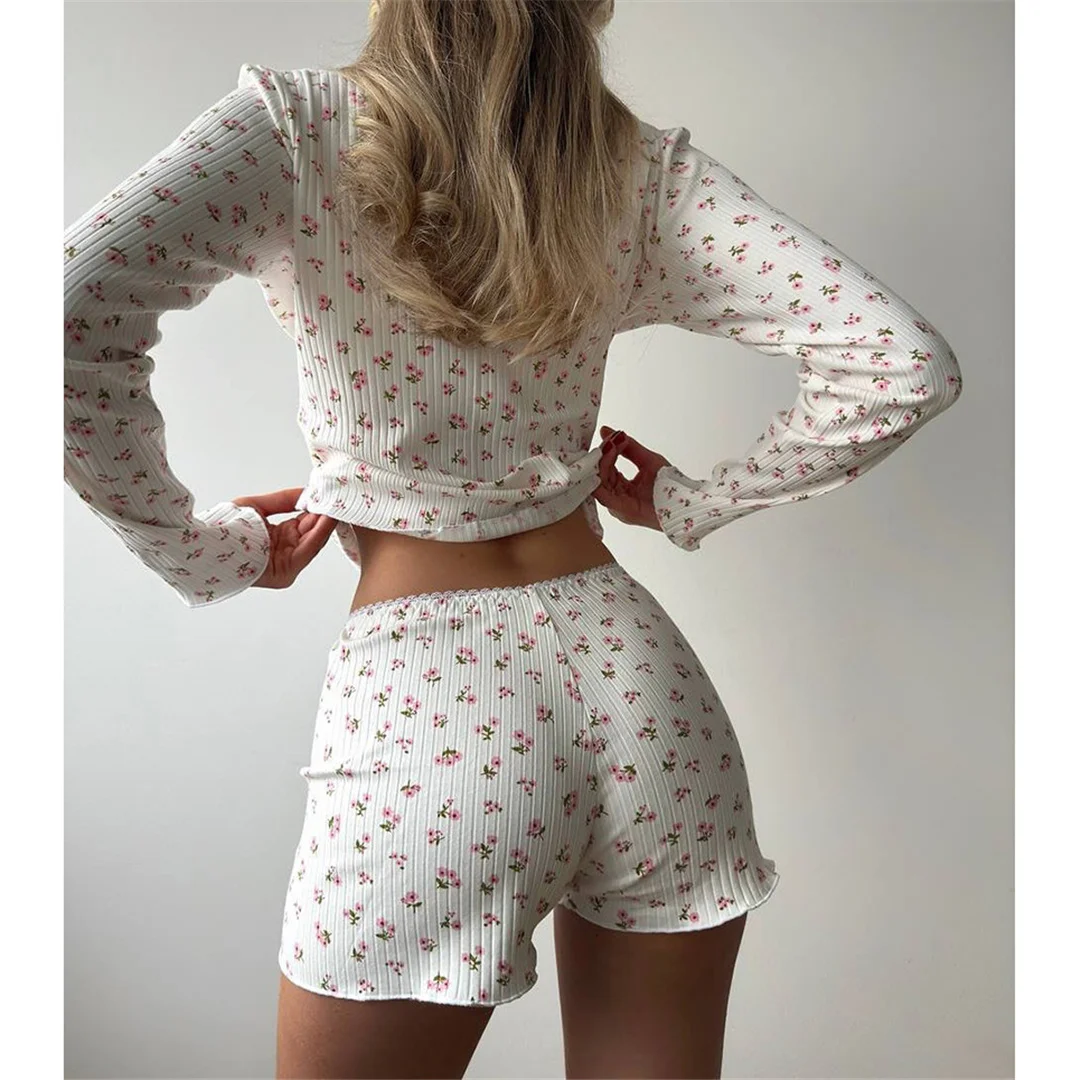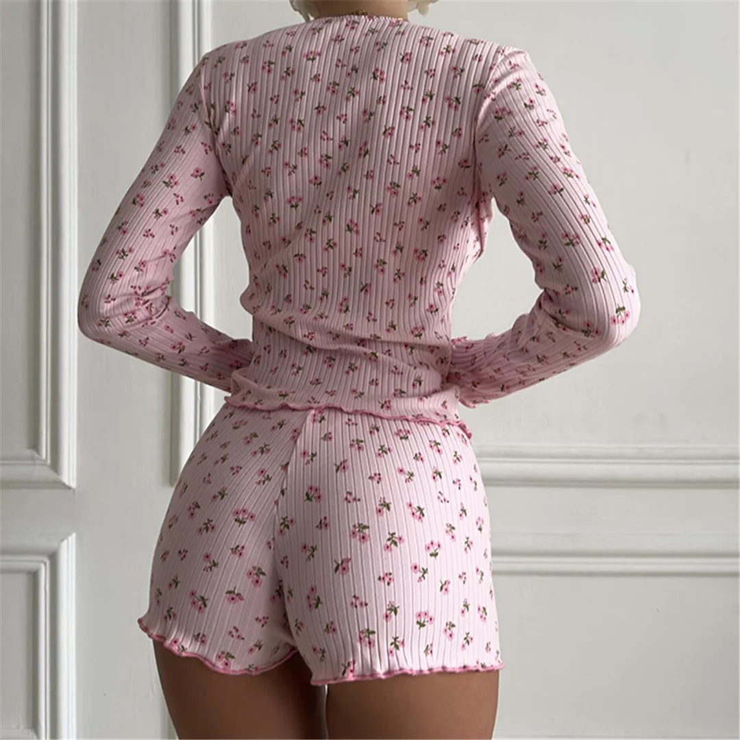 leeve Shorts Nightwear Spring Summer Pajamas Lounge Wear