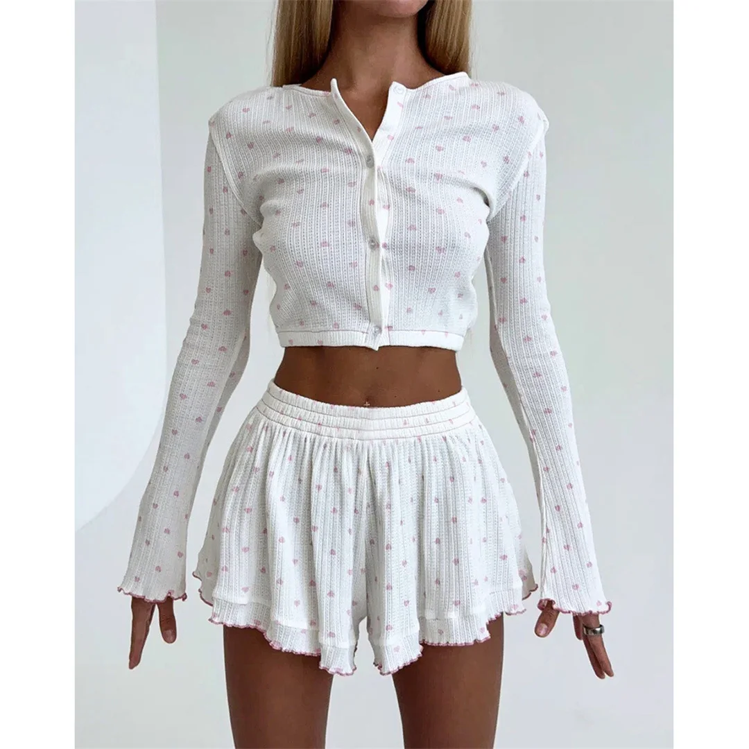 leeve Shorts Nightwear Spring Summer Pajamas Lounge Wear